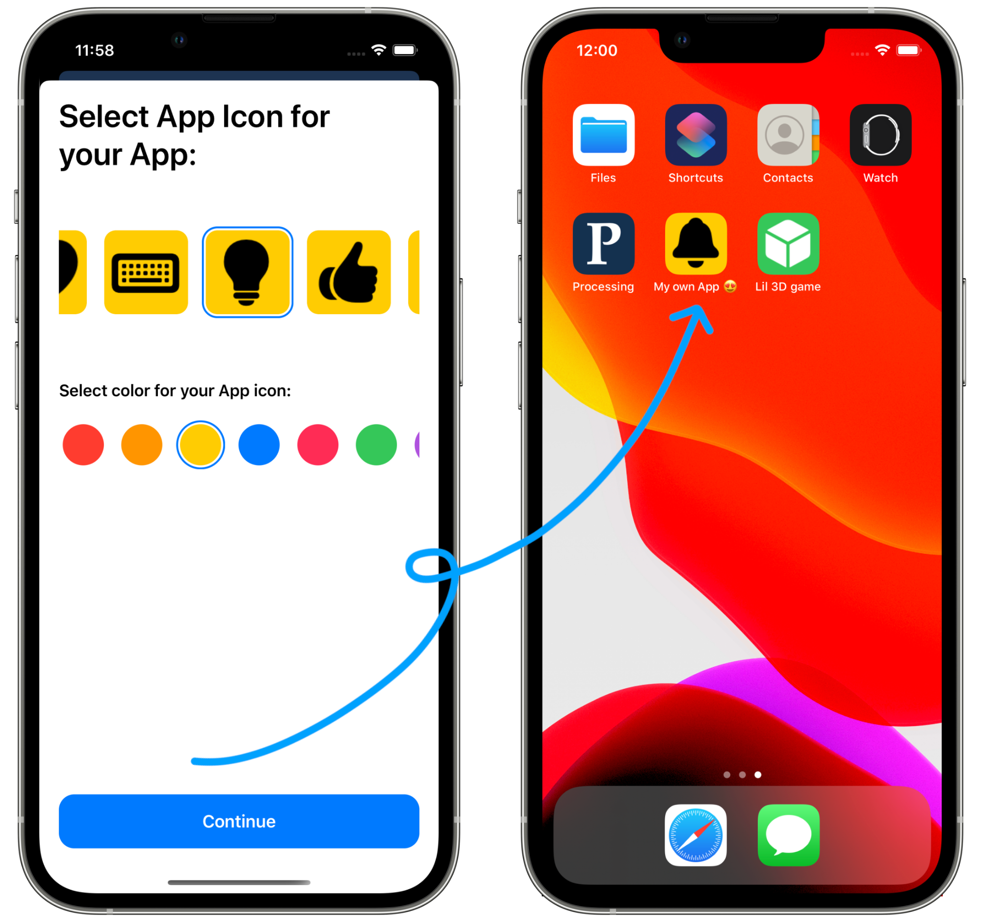 With Processing for iOS, you can export your sketches and add them to your home screen. This way, you can use them just like normal apps – offline, and with their own custom app icon.